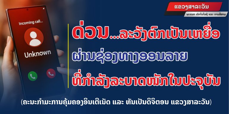 ຄຄອຂ ສາລະວັນ ເຕືອນໄພ ລະວັງຕົກເປັນເຫຍື່ອຖຶກຫຼອກລວງຜ່ານທາງອອນລາຍ